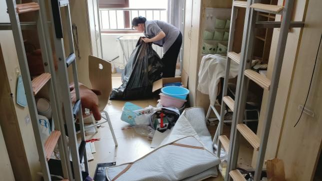 对于行李多的学生,宿管老师们主动出手,有的帮忙抬着沉重的行李箱下楼、有的蹲在地上和学生一起封装书籍,额头上的汗珠顺着脸颊滑落,却挡不住脸上的笑意。在宿管老师心中,毕业生离开宿舍不是‘退房’,而是带着‘家’的记忆再次启航!