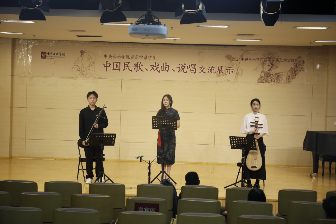 2024年5月21日上午10时,中央音乐院音乐学系艺术实践周“中国民歌、戏曲、说唱交流展示”活动在中央音乐学院701厅隆重举行,音乐学系的师生齐聚一堂,堪称是一场传统音乐的“雅集”。