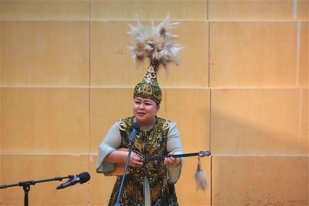 柯尔克孜族史诗《玛纳斯》2009年入选联合国教科文组织“人类口头与非物质文化遗产代表作名录”,当晚传承人铁力瓦尔地用浑厚而富有感染力的吟诵,将观众带到古老的故事中。最后,音乐会在全体艺术家共同欢唱、各乐器共同齐奏的《欢乐》中收尾,台上演员与台下观众都热情洋溢,活动在一片欢腾的气氛中落幕。