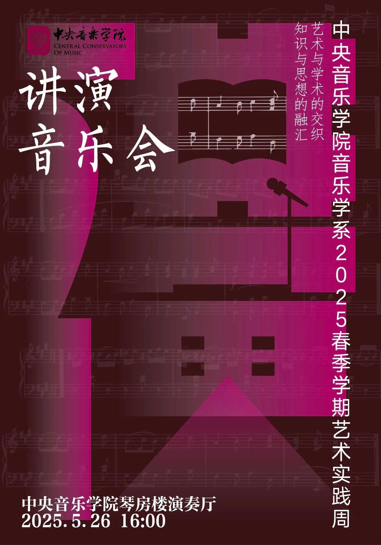 音乐是跨越时空的桥梁,连接心灵与情感,传递智慧与激情。中央音乐学院音乐学系始终致力于培养兼具深厚理论素养与卓越实践能力的音乐人才。在这生机盎然的五月,我们迎来了2025年春季艺术实践周音乐学系学生讲演音乐会,一场讲与演交相辉映的艺术盛宴即将拉开帷幕。