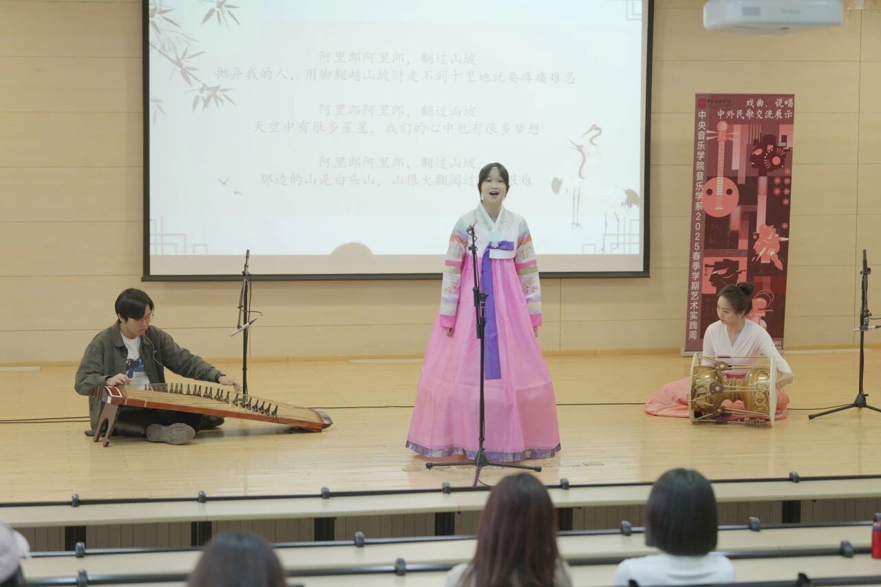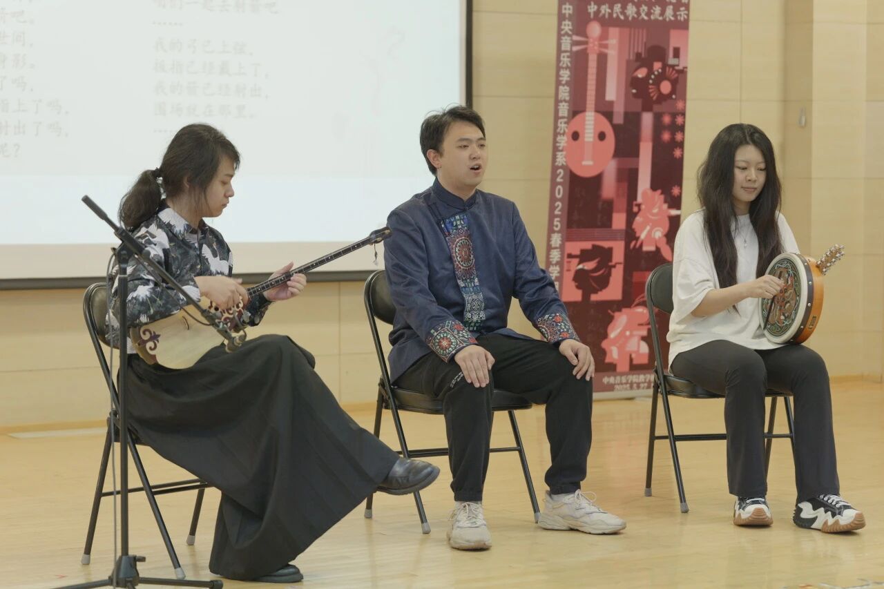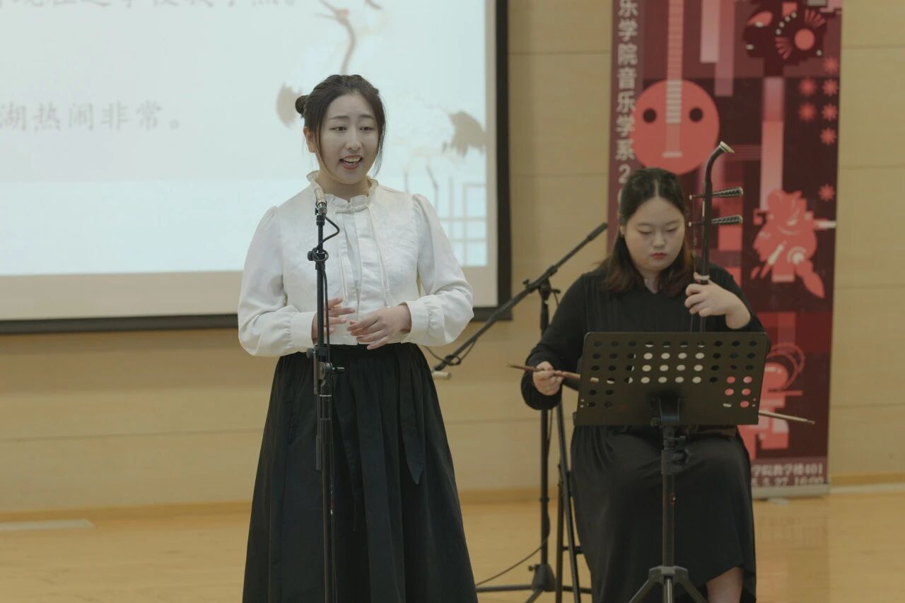 为展现音乐学系学子将深厚理论素养转化为生动艺术实践的能力,5月27日16时,我系于教学楼401音乐厅隆重举办“2025春季艺术实践周——戏曲、说唱、中外民歌交流展示”活动。本场演出精心编排了12个节目,鲜明地呈现出了一个共同点:每组表演者的选曲都深深植根于其个人经历、文化血脉与情感记忆之中,洋溢着中央音乐学院音乐学系独特的人情之味。这场视听盛宴不仅是一次多元文化的精彩碰撞与传承,更生动诠释了同学们积极投身艺术实践舞台,学以致用,开发兴趣潜能,将课堂所学转化为舞台魅力的专业追求与艺术热情。