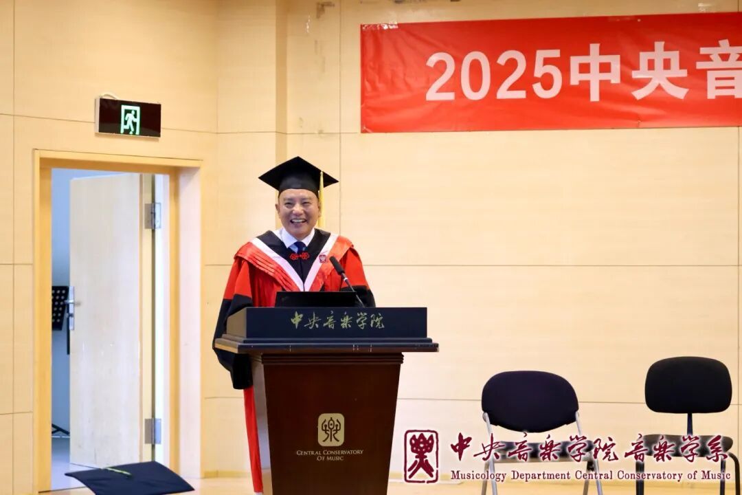 博士毕业生代表于也媞以"学术深潜"为题告白,板凳十年冷,淬炼学术魂,那些抓耳挠腮至东方既白的夜,终将凝成文化解码的利刃,“音乐学人”四字,是永恒的烙印。