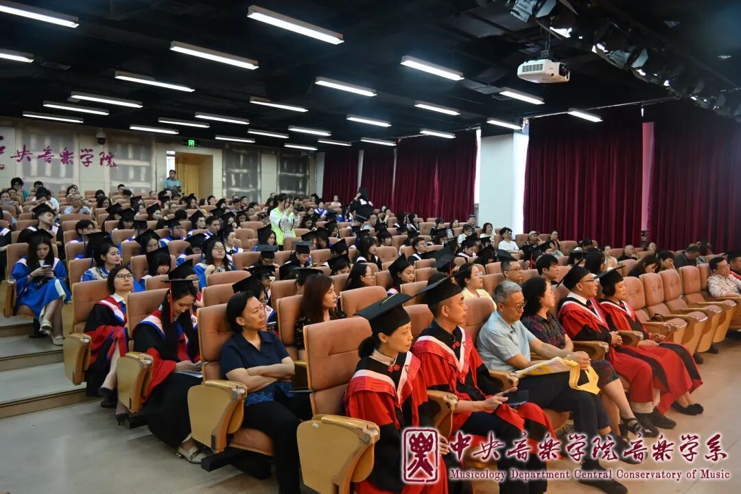 一路长歌再启程,山海奔赴续华章。6月24日下午,中央音乐学院音乐学系2025届毕业典礼于701报告厅温情启幕。音乐学系系主任何宽钊、党总支书记吴晓萍、学校党委原副书记苗建华、原副院长周海宏、音乐美学教研室主任程乾、中国音乐史教研室主任陈荃有、世界民族音乐教研室主任陈朝黎、音乐艺术管理专业教研室副主任昌青等音乐学系教师,与近百名毕业生及亲友共聚一堂,在满载收获与期许的盛夏,为青春加冕,为远行壮歌。