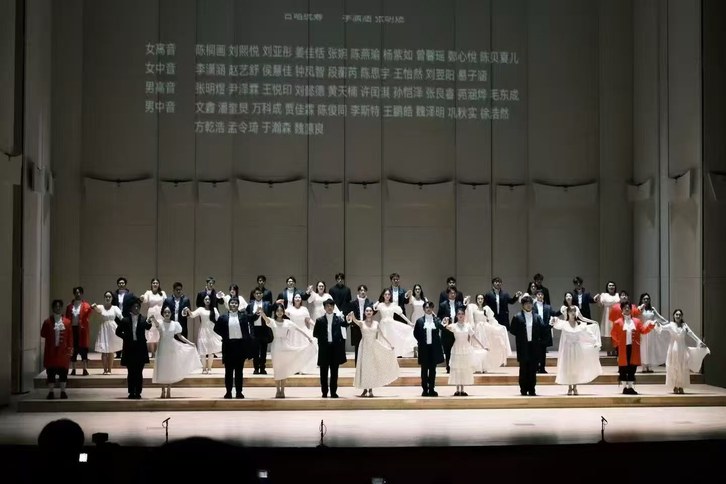 作为学院“双一流”学科建设中的重要实践项目,除了主要演员,合唱演员部分,本科三、四年级学生全员参与,向在场所有师生和观众展现出了良好的专业素养与团队协作能力。