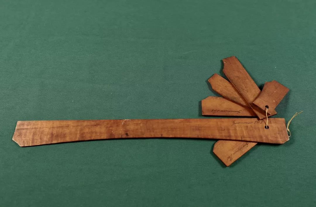 本次捐赠,为欧洲100-300年间的制琴工具,工具品种齐全,数量众多,几乎能够满足儿童提琴以及大中小提琴制作的全部需求,并附有Roger Hargrave先生亲笔签名的鉴定证书。下面就让我们一探捐赠工具中代表作品的传世风采: