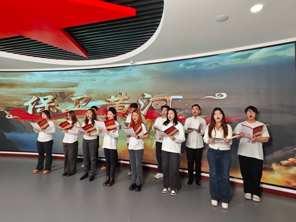 现场师生共同回顾了1937年卢沟桥事变后,长辛店工人为前线将士磨制大刀、支援抗战的感人历史。随后,情景剧、戏曲、歌曲等依次上演,其中既有生动再现工人在车间连夜磨制大刀的情景剧《长辛店利刃》,也有演绎铁路工人家庭三代人前赴后继、传递革命火种的京剧《红灯记》“痛说革命家史”选段;既有展现文艺工作者以电影与音乐唤醒民族魂的京剧《风云儿女》片段,也有讲述地下工作者智取敌伪武器库的情景剧《奇袭伪警局》;既有依托真实家书呈现佟麟阁将军家国情怀的情景剧《佟麟阁家书》,也有气势恢宏、象征民族怒吼的合唱《保卫黄河》——该曲由中央音乐学院学生倾情演唱,以激昂的歌声展现新时代青年的爱国热情与艺术水准;既有展现从内燃机车到高铁技术飞跃历程的情景剧《钢铁长河》,也有抒发新时代自豪与喜悦的歌曲《高铁来了》。八个节目跨越历史与现实,以艺术化的叙事将抗战精神与新时代建设成就紧密相连,生动展现了从战火岁月到高铁时代的民族奋斗与精神传承。最后,在央音学生的领唱下,全场观众齐声高唱《歌唱祖国》,以最真挚的情感表达对祖国的无限热爱,将活动氛围推向高潮。