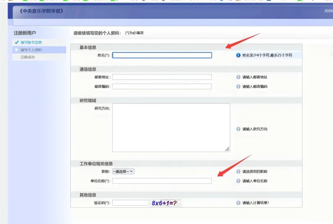 依据编辑部预设,完成必要信息的填写及验证。