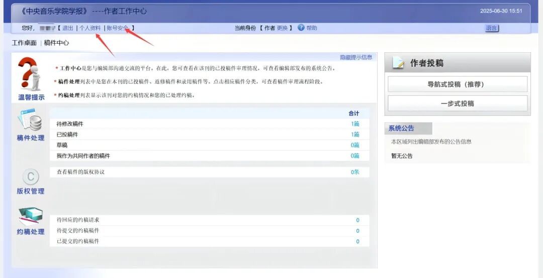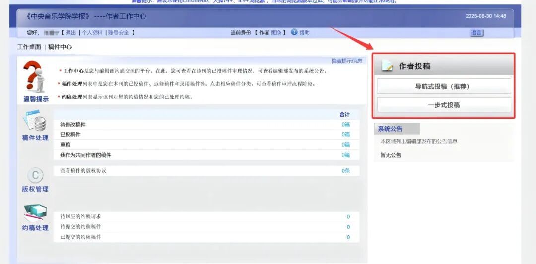 《中央音乐学院学报》作者投稿系统使用指南