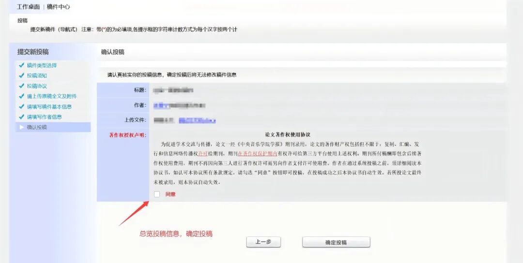 作者确认投稿后,投稿流程结束。