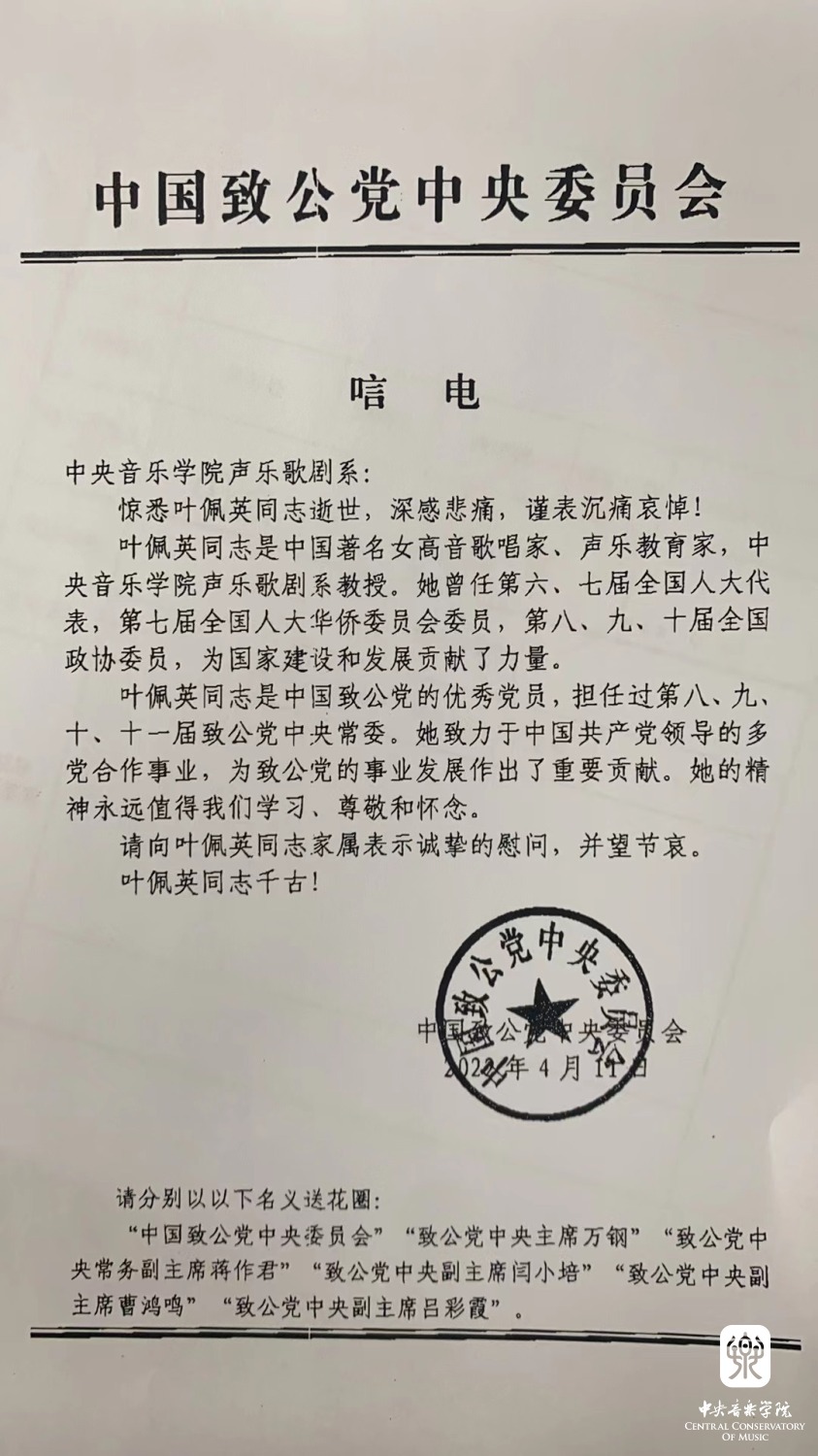 上一条:中国音乐家协会致唁电 悼念叶佩英教授